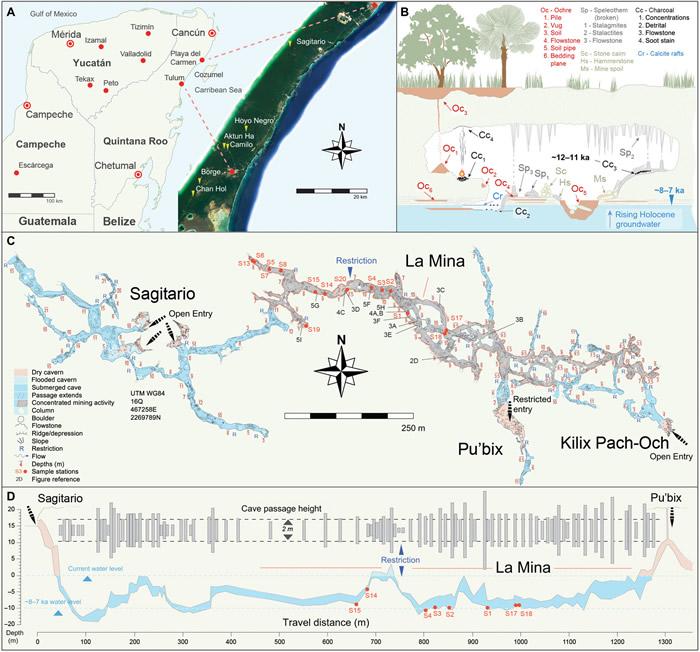 《科学进展(Science Advances)》期刊发表的一篇文章称:“在北美和南美地区发现的首个古印第安时期的地下赭石矿山明确证明,1.2万年至1万年以前,在2000年的时间里,尤卡坦半岛东部三个洞穴系统里曾进行过矿物开采。”