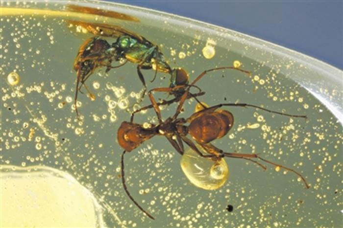 在显微镜下,研究团队发现,这35块琥珀化石的昆虫,包括膜翅目、鞘翅目和双翅目,至少有7个科,其中绝大部分标本属于膜翅目青蜂科,少部分属于鞘翅目隐翅虫科、蜡斑甲科,以及双翅目的水虻科。