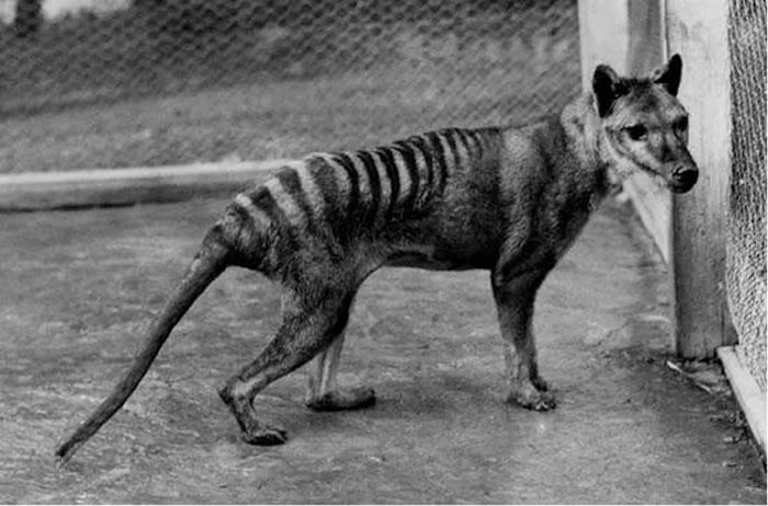 塔斯马尼亚虎又被称为袋狼,是一种近代灭绝动物,它的外型颇似现代犬科动物,现代犬科是食肉性动物,包括:狼、狐狸和家犬等。但袋狼是一种大型有袋类掠食者,它们将幼仔装在与袋鼠和树袋熊相似的育儿袋中。