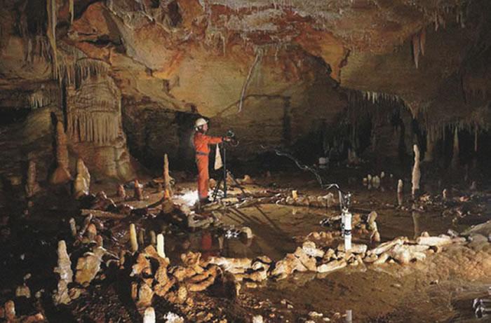 圆环之谜:17.6万年前,现位于法国的布吕尼屈厄洞穴内,尼安德特人取下了4吨重的石笋,并用其搭建了一个看似缺少实际用处的圆环形结构。(图片来源:Etienne FABRE - SSAC)