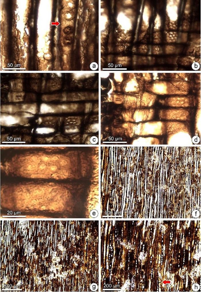 浙江早白垩世松柏类木化石“周氏短木”交叉场纹孔及木射线构造
