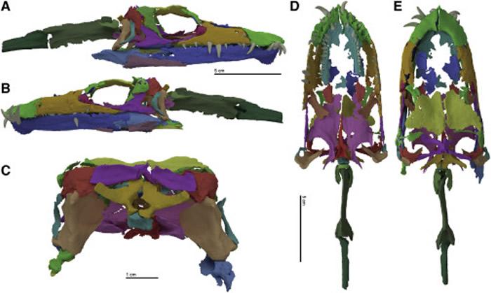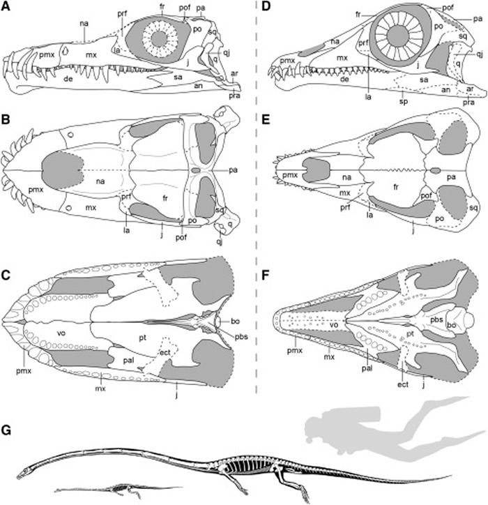 研究团队从一系列标本中重新找出一些被压扁的头骨进行检查。通过CT扫描和数字定位,科学家对头骨进行重建,并找到了关键解剖细节,确认了大小两种尺寸的化石来自两种不同的长颈龙。两种长颈龙在相同水域中生存,但体形较大者以鱼类、鱿鱼等头足类动物为食,较小者则以虾等无脊椎动物为食。