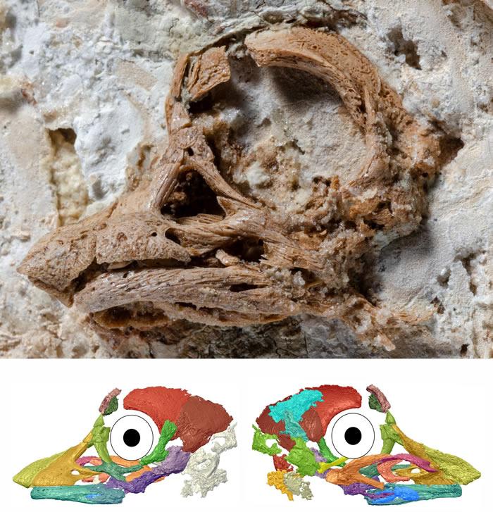 “我们论文中研究的标本是首个3D保存的蜥脚类动物胚胎头骨。”斯洛伐克帕沃尔·约瑟夫·沙法里克大学古生物成像实验室的Martin Kundrat说,“其最引人注目的特征在头部,显示出刚孵化的巨型恐龙的早期生境和生活方式与成年恐龙有所不同。”