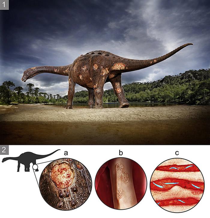 巴西北里奥格兰德联邦大学、圣卡洛斯联邦大学和坎皮纳斯大学的研究人员在一只泰坦巨龙(白垩纪的一种草食恐龙)的化石中发现了这种寄生虫化石,它可能与恐龙生前所患骨髓炎有关。