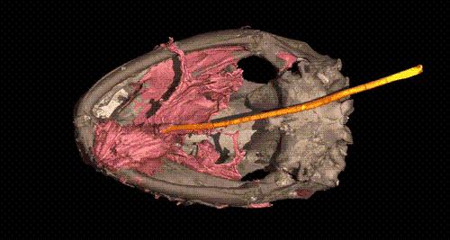根据头骨的大小,科学家们能够估计出这种成年动物体长约两英寸,不包括尾巴。然而这些小小的两栖动物的舌头就像致命的、快速出击的拳头。