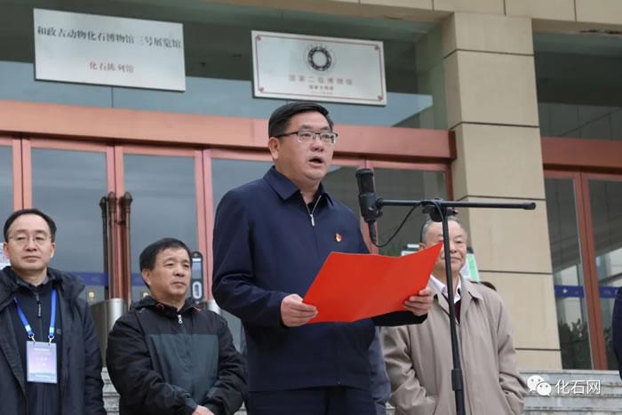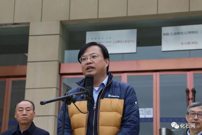 揭牌仪式上,中国古生物学会宣读了中国古生物学会关于授予和政古生物化石博物馆全国科普基地的决定,并向博物馆负责人颁发了牌匾。和政县委副书记、县长蒋建民代表和政县领导致辞。