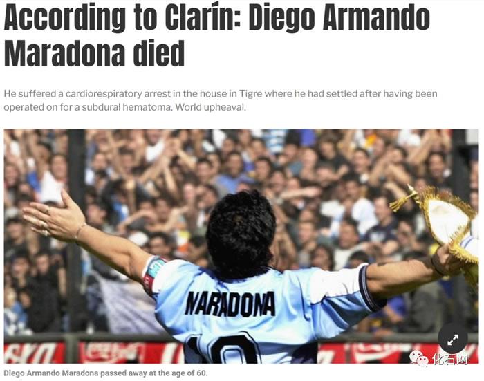 (化石网整理 编辑:盛捷 审核:黄迪颖、陈孝政)传奇球星迭戈·马拉多纳在阿根廷时间2020年11月25日突发心脏病离世,享年60岁。从阿根廷国内到世界各地,从拉美足坛、国际体坛到整个国际社会,人们纷纷悼念这位足球世界标志性人物。