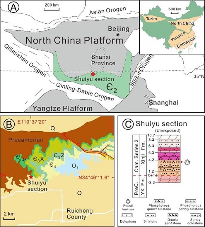 近期,中国科学院南京地质古生物研究所潘兵博士等与瑞典和澳大利亚合作者在华北地台南缘芮城县学张乡水峪剖面寒武系第二统辛集组中发现了大量的磷质腕足类,并对其做了系统性研究。相关研究成果已发表在《远古世界》(Palaeoworld)杂志上。