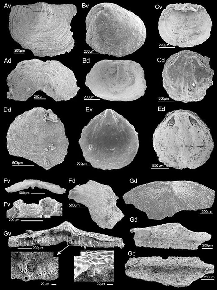 腕足动物作为地质历史上持续时间最长且繁盛至今的若干个为数不多的后生动物门类之一,在寒武纪演化动物群和古生代演化动物群中均扮演着十分重要的角色。根据壳壁矿物成分的差异,腕足动物主要包括磷酸钙质壳的磷质腕足类(舌形贝型亚门)和碳酸钙质壳的钙质腕足类(小嘴贝型亚门和髑髅贝型亚门)。在寒武纪第二世即寒武纪大爆发的主幕,磷质腕足类在碳酸盐岩和碎屑岩中被大量保存。