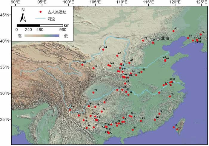 我国古人类遗址分布图(参考: 刘武等, 2014)