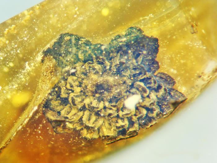 专研琥珀的俄勒冈州立大学荣休教授波拿尔(George Poinar Jr.)表示,该学名叫Valviloculus pleristaminis的花朵,虽仅两毫米长,但却蕴藏50枚螺旋状雄蕊,其花药朝天,细节结构非常完整,与现代的同科花已没甚么不同。