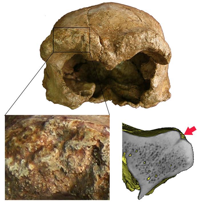 和县直立人头盖骨表面的裂痕(吴秀杰供图)