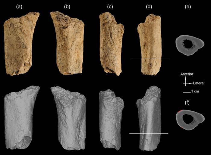 邢松表示,科研团队通过与中晚更新世(约78万-1万年前)的直立人、尼安德特人、早期现代人等对比发现,HLD11股骨在整体尺寸、生物力学指标、外轮廓形状上,处于中更新世(约78万-13万年前)和晚更新世(约13万-1万年前)古老人群(尼安德特人)变异范围内;HLD11股骨外轮廓形状较圆,无早期现代人明显的股骨脊,这种形态的股骨在周口店以及其他中更新世人群中较为常见,直到晚更新世早期现代人出现的时候才出现股骨脊这个形态特征。