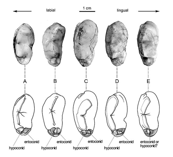 三种短吻硕鬣狗亚种的下裂齿跟座形态比较 (刘金毅 供图)