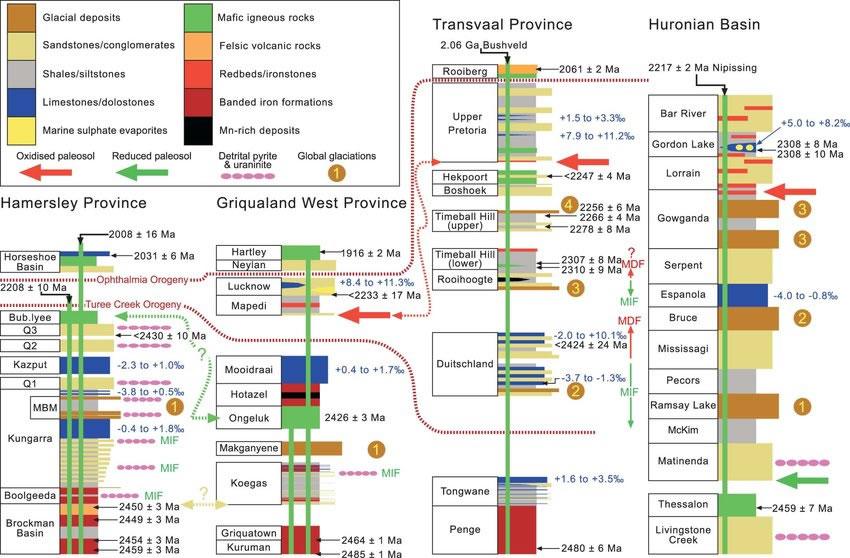 在此,科学家通过南非德兰士瓦尔超群的海洋沉积物,对古代早期最后两次冰期的大气和局部海洋氧化还原条件进行了高分辨率重建。利用多重硫同位素和铁—硫—碳系统,科学家证明了大约23.2亿年前之后大气氧水平的持续振荡,这与海洋氧化还原化学和气候的主要扰动有关。