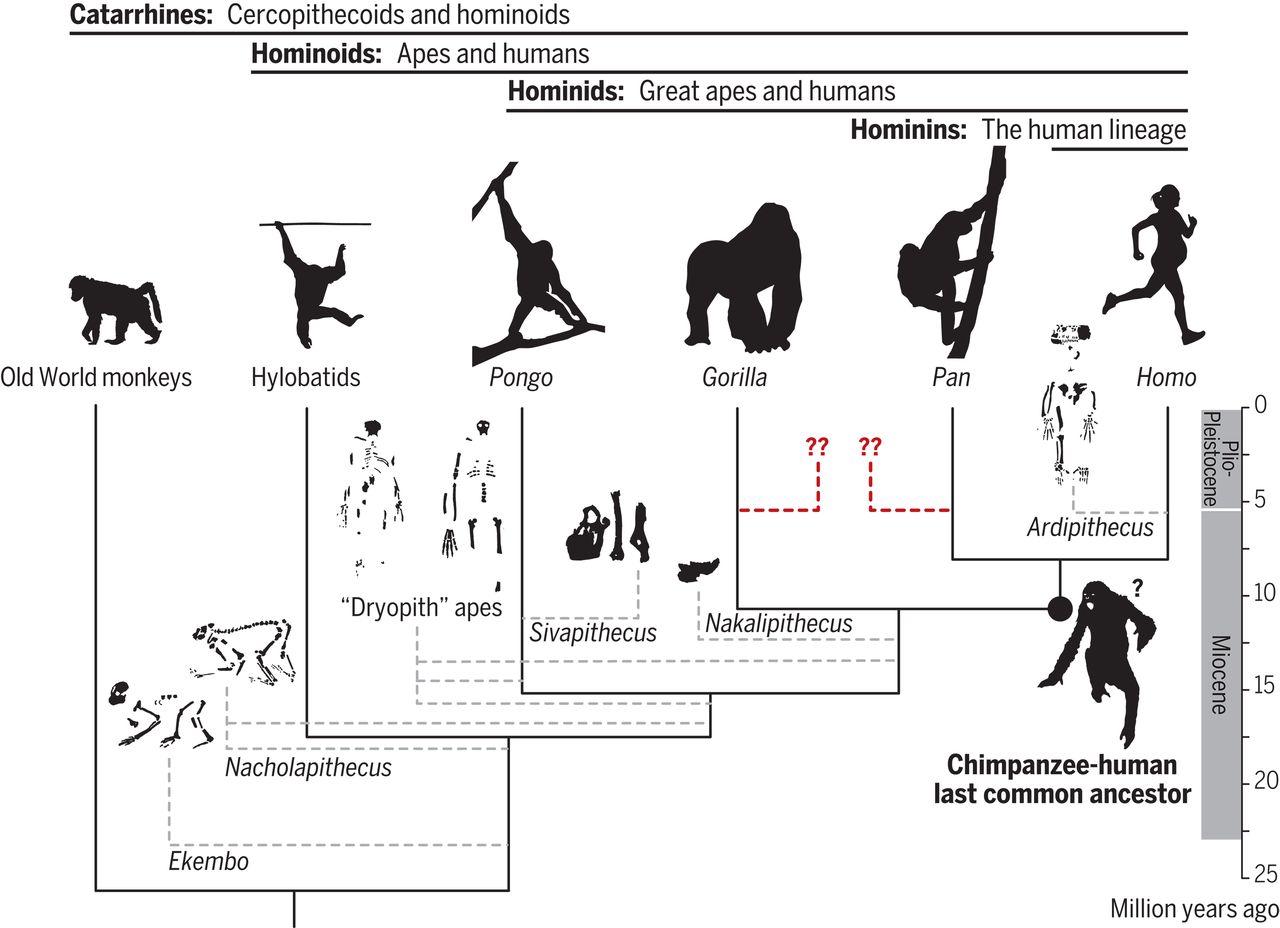 人类在大约930万年前到650万年前,即中新世末期,从类人猿特别是黑猩猩谱系中分化出来。美国自然历史博物馆人类学部门高级科学家、该评论主要作者 Sergio Almécija说:“有关人类起源的叙述简直是一团糟,根本就没有共识。人们在完全不同的范式下工作,这是我在其他科学领域看不到的。”