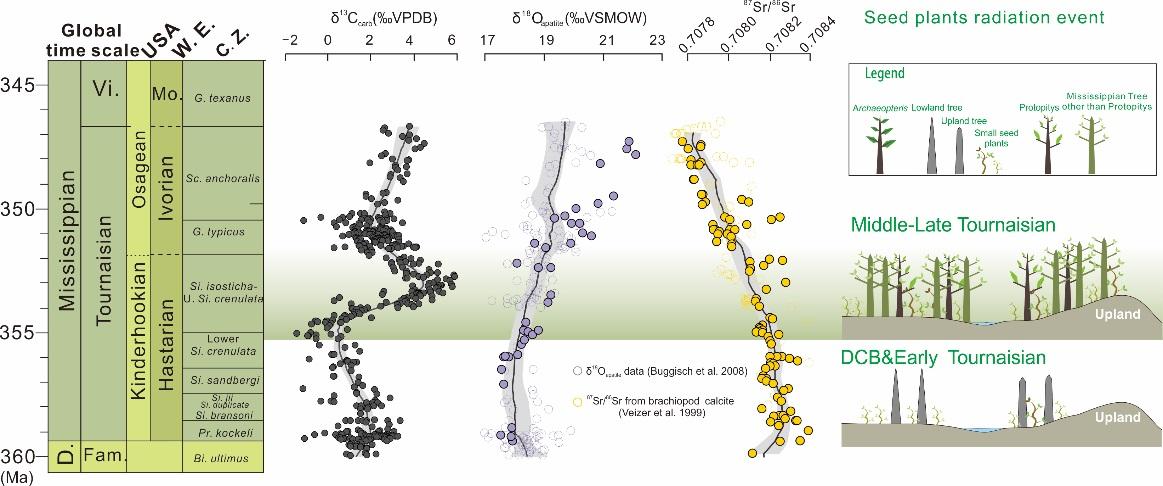 早石炭亚纪杜内期碳、氧、锶同位素变化与种子植物演化之间的关系