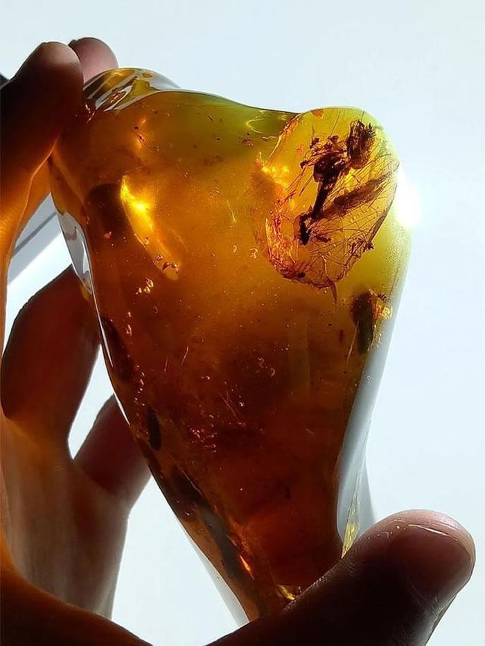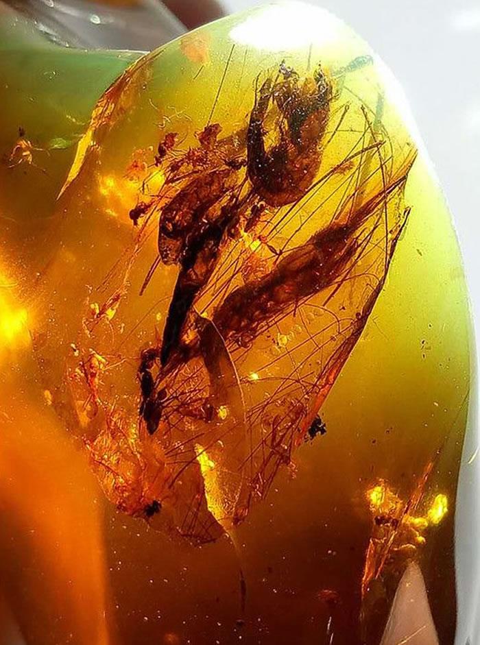 9900万年前,4只幼虾和19只甲虫同时被包裹