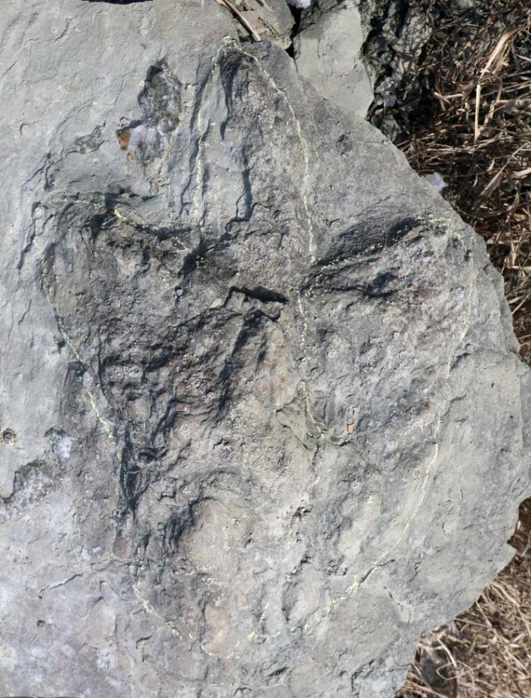 柳沟峁的脊椎动物足迹位于一块落石之上,包括了5个孤立的恐龙足迹和6个孤立的龟类足迹。