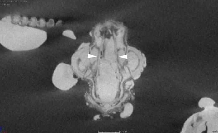 据介绍,在显微CT下,缅甸琥珀中的昆虫标本通常表现为一个空腔或一个同质的高吸收度实体。“这枚标本中的肌肉没有表现出明显的皱缩,可以推测,其保存时经历了‘木乃伊化’过程。”蔡晨阳说,琥珀泛指树脂形成的化石,琥珀昆虫则是被树脂包裹在内。通常情况下,树脂在脱水和多聚化的过程中,会把昆虫体内的水分和软组织吸走,促使昆虫内部软组织缢缩成团,因此昆虫肌肉保存良好的情况比较罕见。
