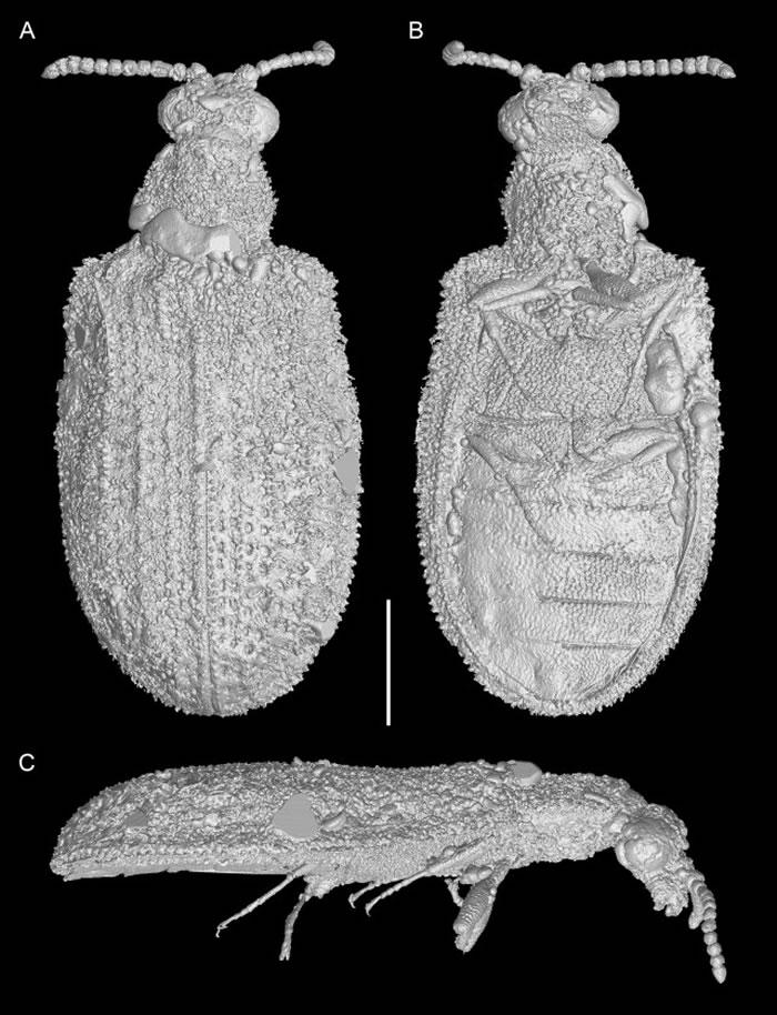 (化石网整理)据新华社(记者:朱筱、王珏玢):肌肉、神经等软组织为重建生物的演化历史提供了不可替代的重要信息。记者从中国科学院南京地质古生物研究所获悉,该所科研人员利用显微CT等多种观察手段,在缅甸琥珀中发现了1亿年前甲虫“木乃伊化”的肌肉。相关研究成果已于近日发表在国际动物学期刊《动物学论丛》上。
