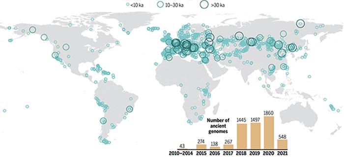 图一. 截止2021年6月前每年已发表的人类古基因组数据