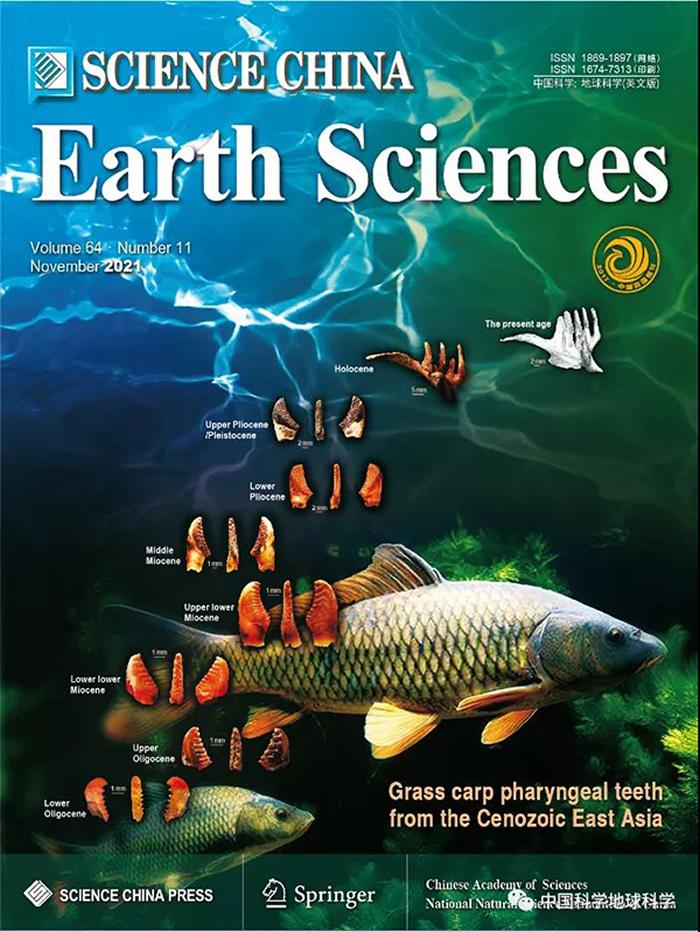 (化石网整理)据中国科学院古脊椎动物与古人类研究所:《中国科学:地球科学》英文版2021年第11期发表了英文题为Fossil pharyngeal teeth of grass carp group and their implications for evolution , temporal and spatial distribution pattern, and paleoenvironment的封面文章,同时中文版2021年第11期发表了中文题为草鱼类咽齿化石新属种时空分布格局及其起源演化与古环境意义的封面文章(图1)。该文章系统地研究了中国东部地区新近纪以来类草鱼咽齿的演化、时空分布并探讨其古环境意义。
