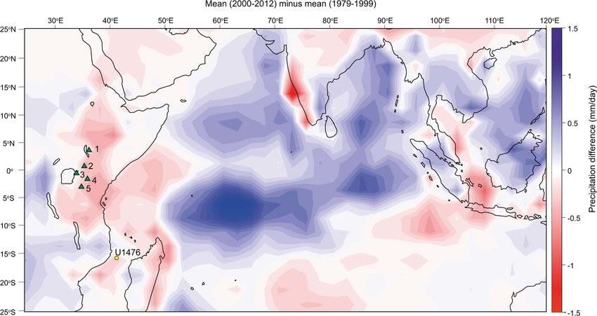 作者提供了一种机制,解释了MCT流速的增加反映了促进非洲干旱化的印度—太平洋沃克单元的同步发展。研究表明,大约210万年前之后,干旱被明显的湿润间冰期打断。