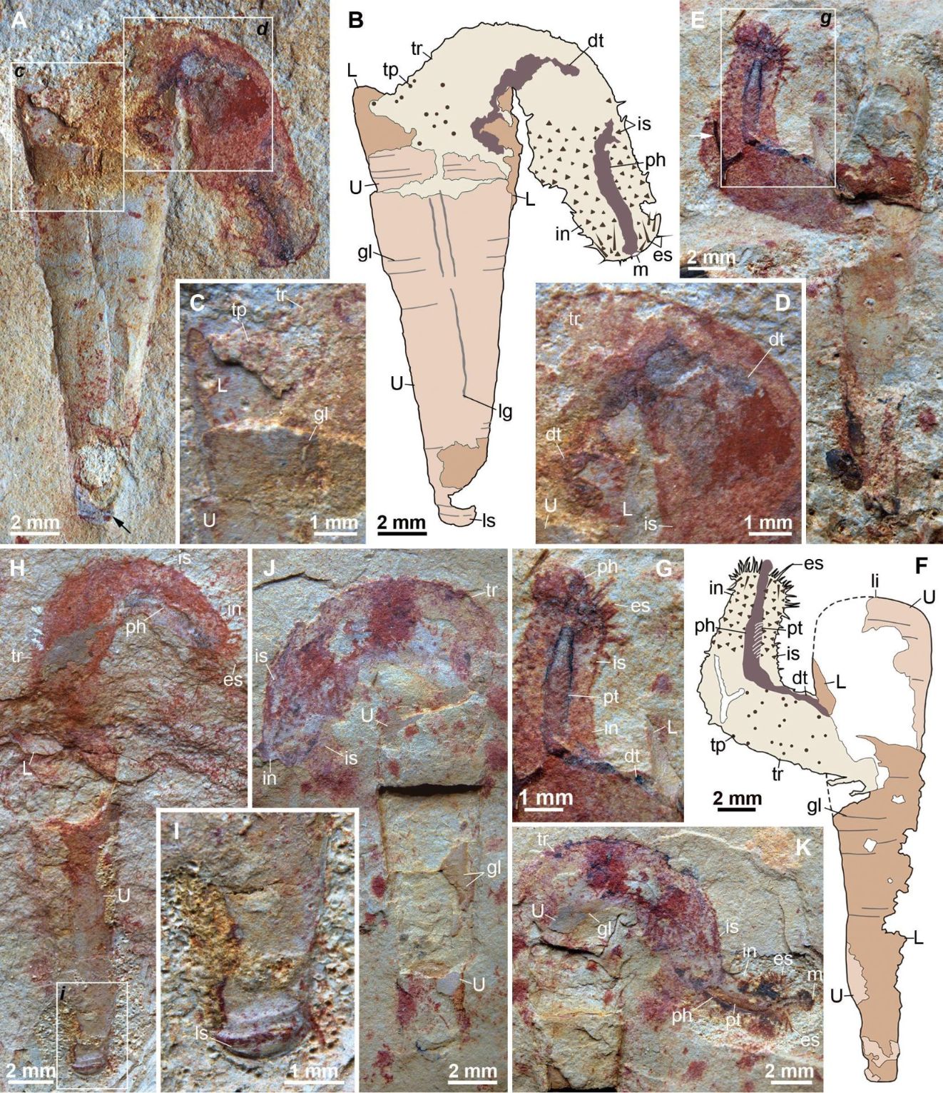 (化石网整理)据cnBeta:杜伦大学和云南大学的研究团队,刚刚在一篇新文章中介绍了大约 5 亿年前的一种 Priapulida 蠕虫,特点是具有类似“寄居蟹”的生活方式。众所周知,寄居蟹喜欢用各种螺壳作为抵御捕食者的庇护所。但现在,我们得知在寄居蟹首次进化的数亿年前,Priapulida 蠕虫就已经在这么生活了。
