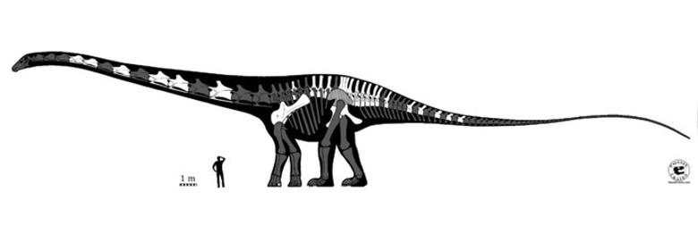 (化石网整理)据东网:蜥脚类恐龙一向被视为地球有史以来最大的陆地生物,但哪种恐龙体型最大一直众说纷纭。美国有专家复原1972年多块化石后,发现骨骼同属一只梁龙科的超级龙(Supersaurus),推测超级龙身长可长达42米,比原本估计的34米更长,有望成为目前已知世界上最长的恐龙。
