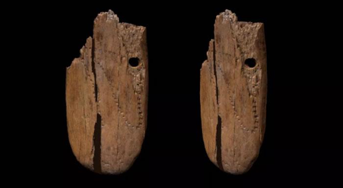研究人员表示,这种压痕图案与在欧洲发现的年代更近的珠宝图案类似,可能代表了狩猎计数(一种数学计数系统)或者月亮标记(与月亮或太阳的月周期相对应)。