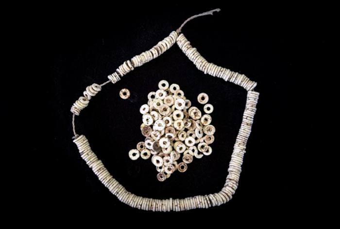 在有史以来最古老的装饰品中(可以追溯到5万年前),这些由鸵鸟蛋壳制成的中性色调、Cheerio形状的珠子,是古代的独特印记。