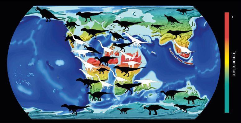 他们将化石数据与气候数据结合起来,允许对恐龙类型的栖息地的温度范围进行估计,发现在较冷的时期,蜥脚类恐龙在各纬度的活动范围更受限制。然后他们使用栖息地模型来推断全球哪些地区可能适合蜥脚类恐龙和其他类型的恐龙生活。