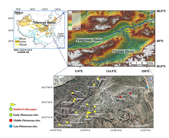 (化石网整理)据中国科学院古脊椎动物与古人类研究所:更新世古人类活动遗址的古环境和古生态重建,是理解人类演化和行为适应性的重要基础。中国北方的泥河湾盆地以密集分布百万年前古人类活动遗址为学术界所关注,被誉为“东方的奥杜威峡谷”和“东方人类故乡”。然而,在中更新世气候转型期气候变率增大的大环境背景下,泥河湾盆地内不同古人类活动遗址的区域环境及古人类技术行为的适应性,尚缺乏系统研究。