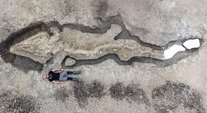 英国中部地区发现境内最大最完整鱼龙化石 仅头骨就重达一吨