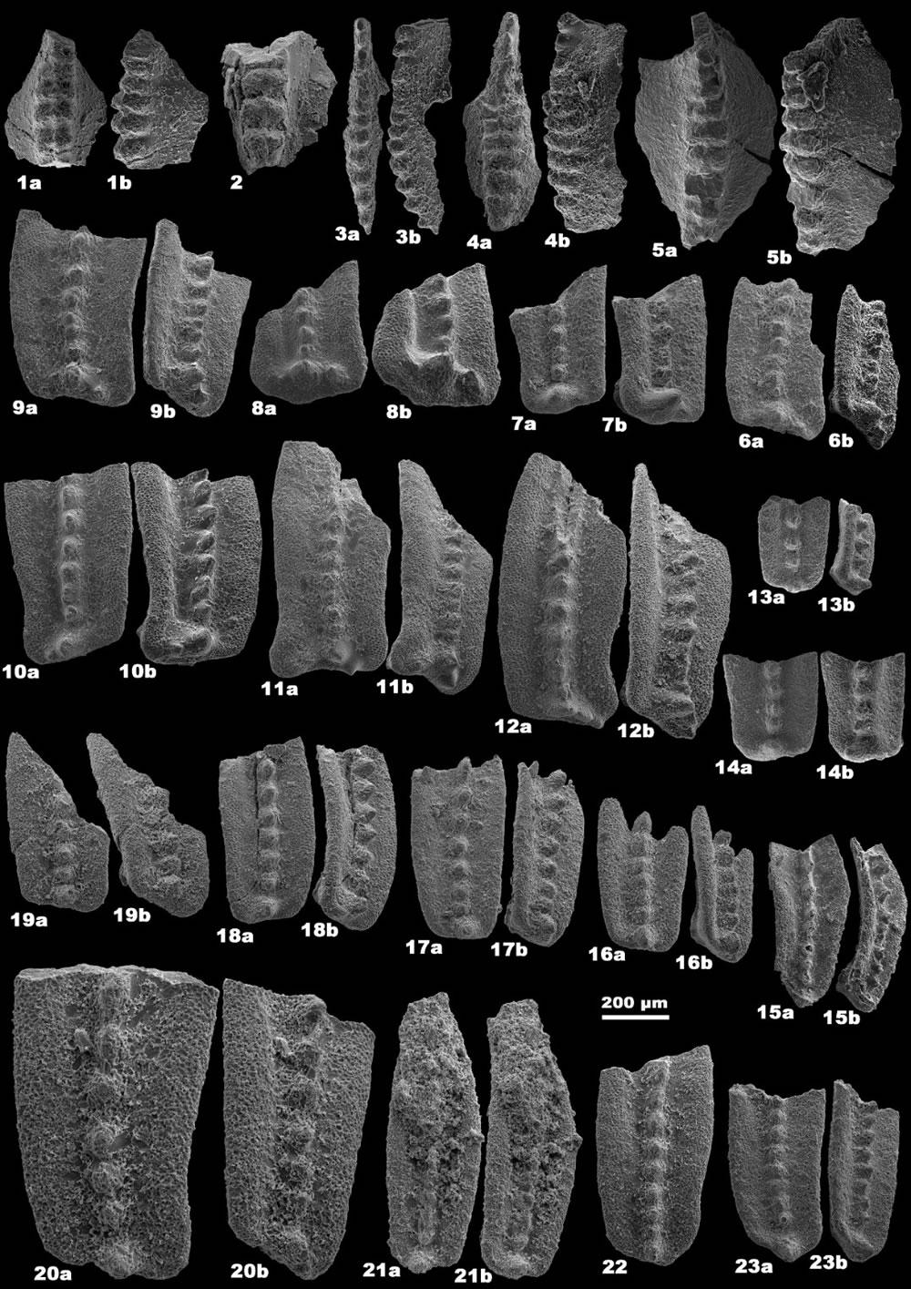 研究发现,䗴类和牙形类均产自于玄武岩之上的鲁谷组地层中。牙形类主要由Mesogondolella siciliensis,M. qiangtangensis sp. nov.,Sweetognathodus subsymmetricus和S. guizhouensis组成,时代属于Kungurian晚期。共生的䗴类主要有:Neoschwagerina simplex, Armenina asiatica, Yangchienia tobleri和Pseudodoliolina ozawai minima;其时代为Murgabian期。