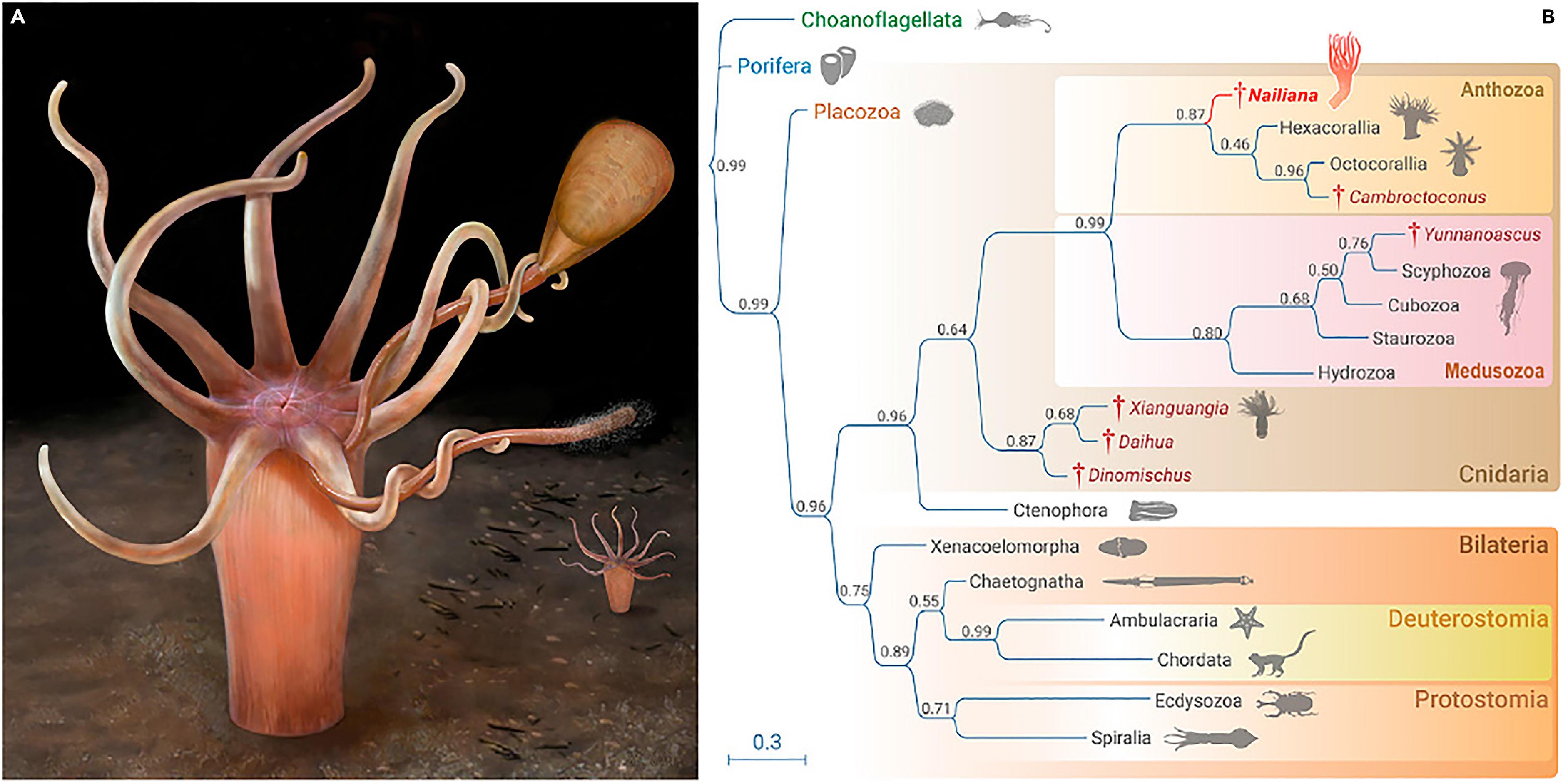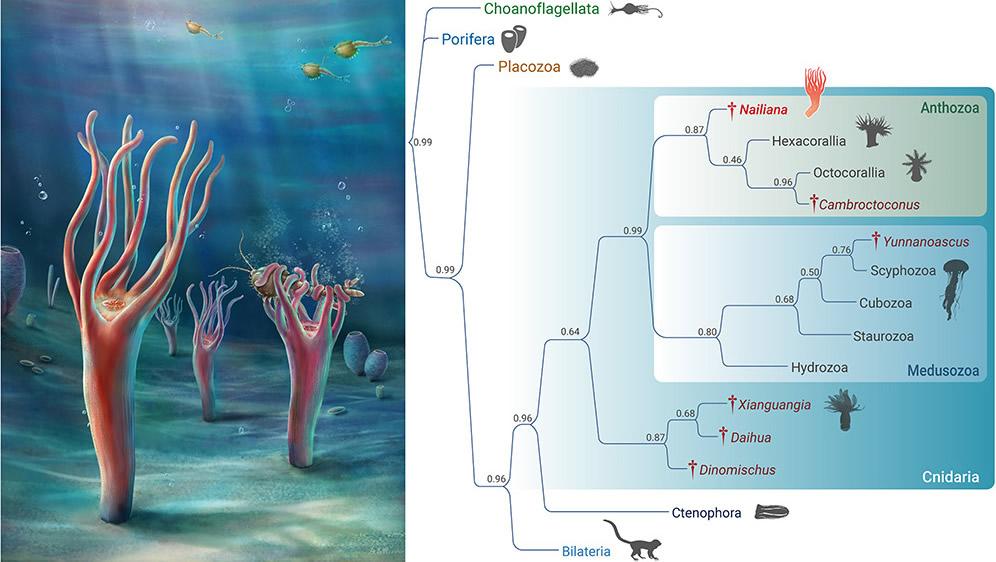 分析结果显示,迺莲海葵是刺胞动物门珊瑚纲(六射珊瑚+八射珊瑚)的一个原始分支。研究人员由此推断珊瑚类的祖先类型可能为八辐射对称、单体、无外骨骼的水螅型,营固着底栖的捕食生活;而珊瑚类的群体生态、骨骼系统及其他对称性则是后期演化而来。