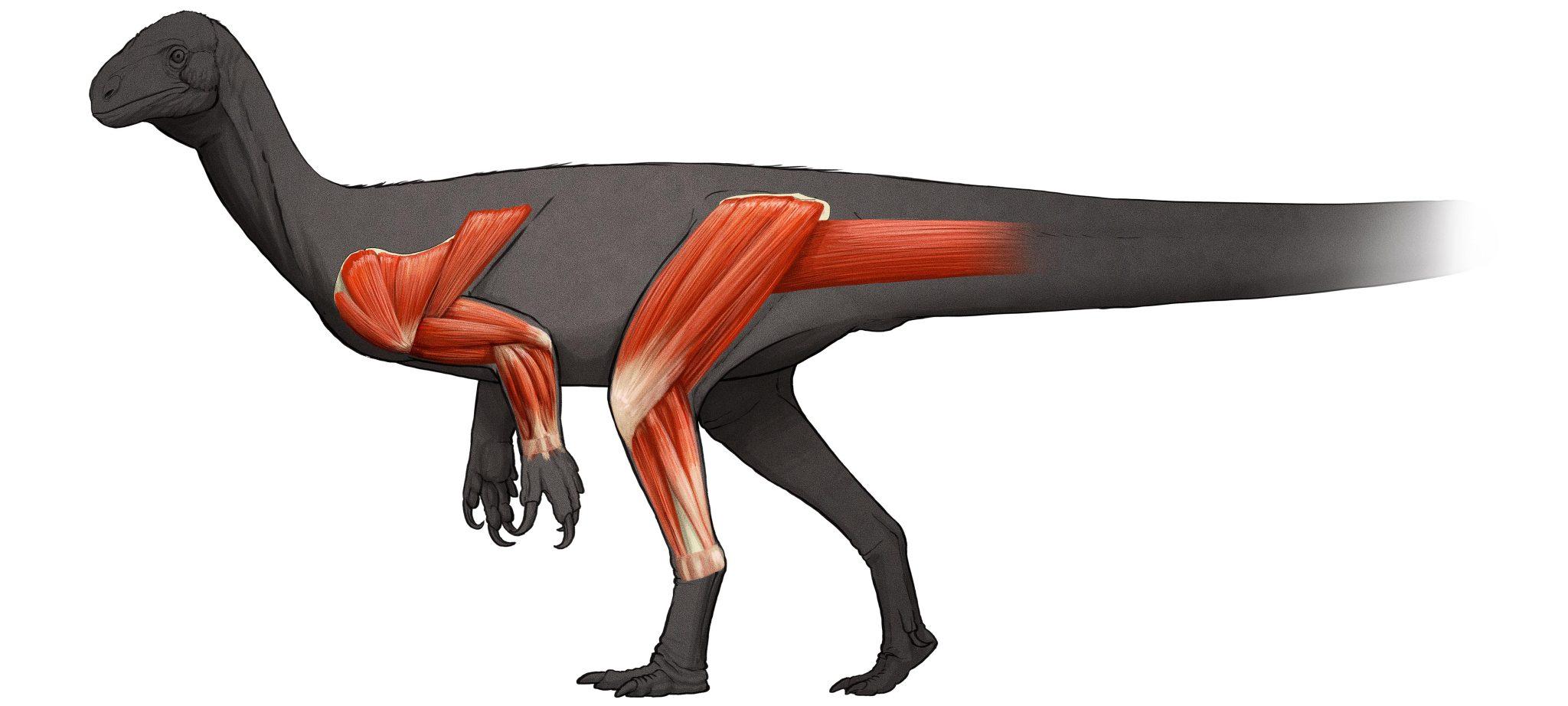 这跟它后来的亲戚--巨型蜥脚类恐龙形成了鲜明对比,后者部分是通过转变为四足的姿势来实现这些巨大的身体尺寸。槽齿龙的肌肉解剖学似乎表明,后来的长脚类恐龙的关键特征已经在这个早期物种中进化了。