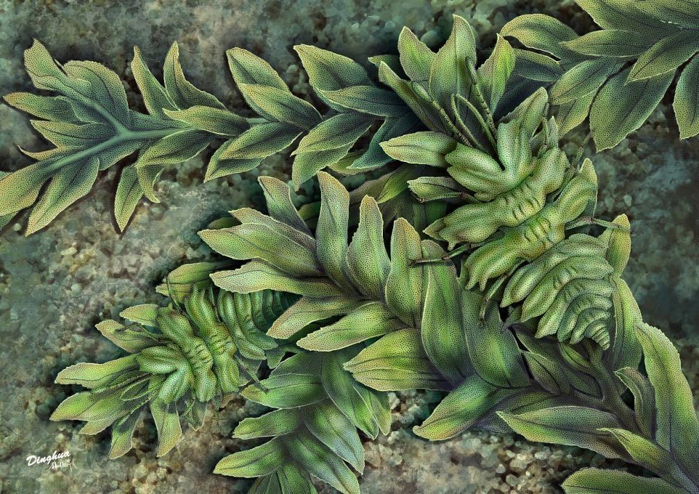 拟苔草蛉拟态卷柏的生态复原图(杨定华 绘图)