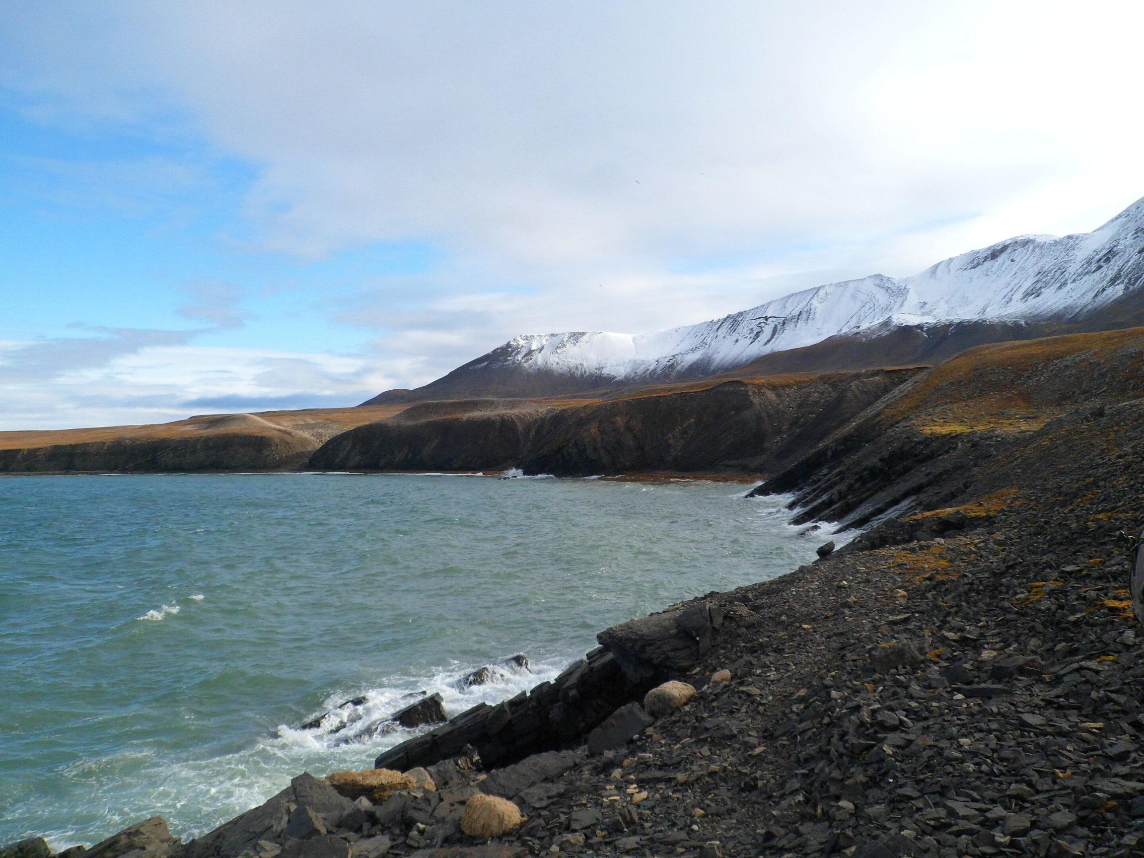 挪威斯瓦尔巴群岛的海岸线暴露了二叠纪-三叠纪岩石,这里有大灭绝的记录。(Credit: W.J.Foster)