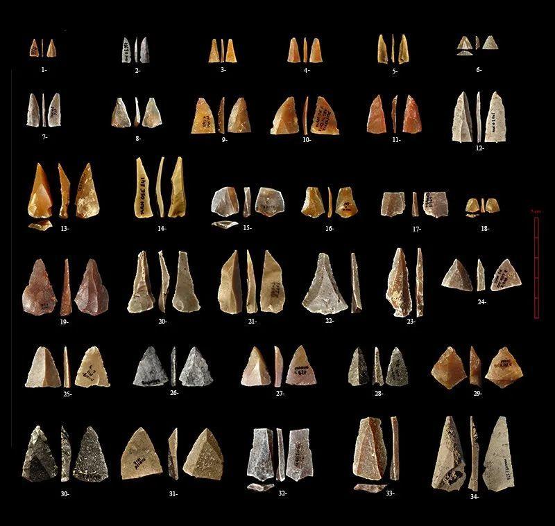 这些削尖的石头可能曾经被用作矛头或其它石器的尖端。研究者认为它们与智人有关。图片来源:Laure Metz和Ludovic Slimak