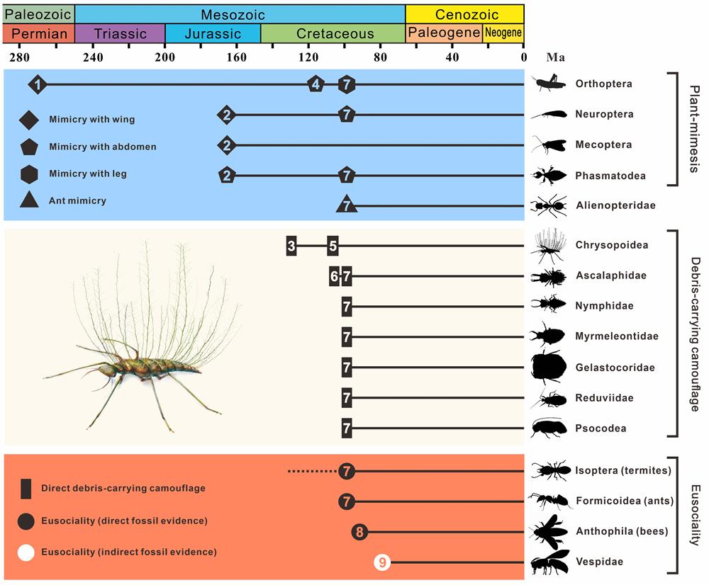 目前,我们对昆虫的深时生态角色的了解依然很少,对其演化历史的认知也存在较大偏差。特别是与同时代的脊椎动物和海洋无脊椎动物类群相比,昆虫化石记录具有更多地理、时代和类群的空缺。例如,现有的中生代昆虫化石主要来自于全世界28个特异化石库,而这些化石库主要分布于北半球的中纬度地区。由于化石缺失,我们对昆虫如何响应二叠纪末大灭绝以及白垩纪末大灭绝事件仍然知之甚少。此外,由于保存和采集偏差,现有的昆虫化石主要是中等体型的类群,而小型和大型昆虫化石的比例则明显偏低。总之,这些偏差在一定程度上影响了我们对昆虫演化的认识,因而迫切需要更多的化石收集工作来弥补。