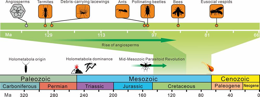中生代是现代昆虫群形成的时期。近二十年来,随着新化石的发现和研究技术的进步,我们对中生代昆虫的演化历史有了更深入的认识。