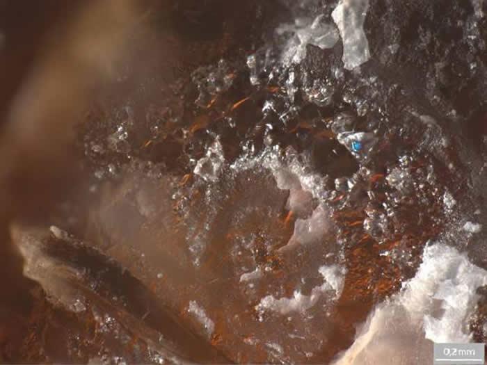 “琥珀中出现硬质矿物的情况,比此前预想的更加普遍。这说明琥珀内部并不完全是封闭的世界。伴随漫长的地质演化,不同时期的物质仍然可以顺着树脂和生物的裂隙渗透进来,让标本也浸染上地质变化的痕迹。”姜慧说。