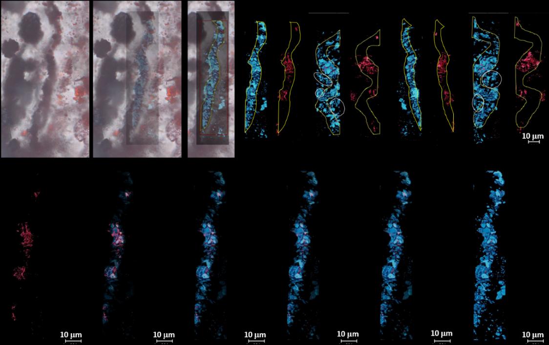 “运用光谱成像分析,我们就能够看到样品中各种化合物的空间分布情况。如果在矿物中发现了碳和磷的化合物,表明这些矿物可能是早期生物经过降解后残留下来的产物”。