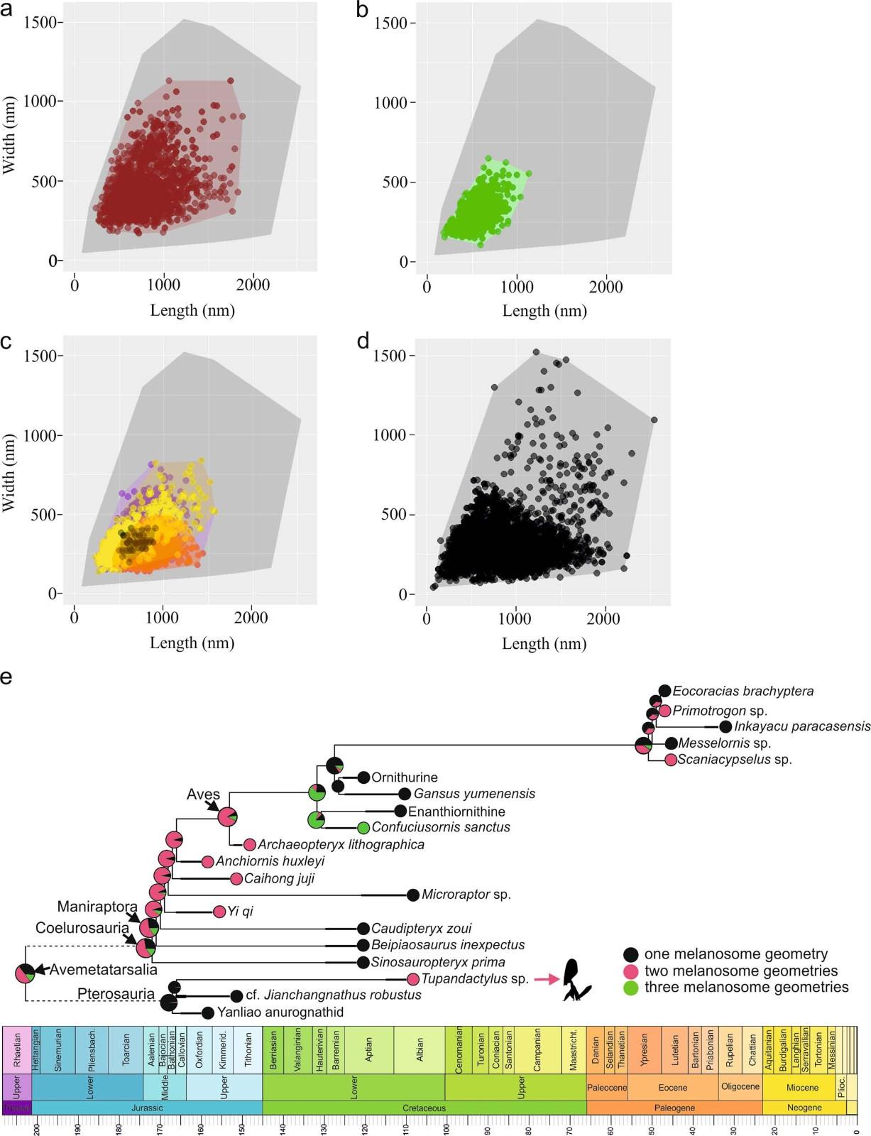 “在今天的鸟类中,羽毛颜色与黑色素体的形状密切相关。” 研究人员说,“由于翼龙的羽毛类型有不同的黑色素体形状,这些动物一定拥有控制羽毛颜色的遗传机制。这一特征对于颜色图案至关重要,并表明即使是最早的羽毛,着色也是一个关键特征。”