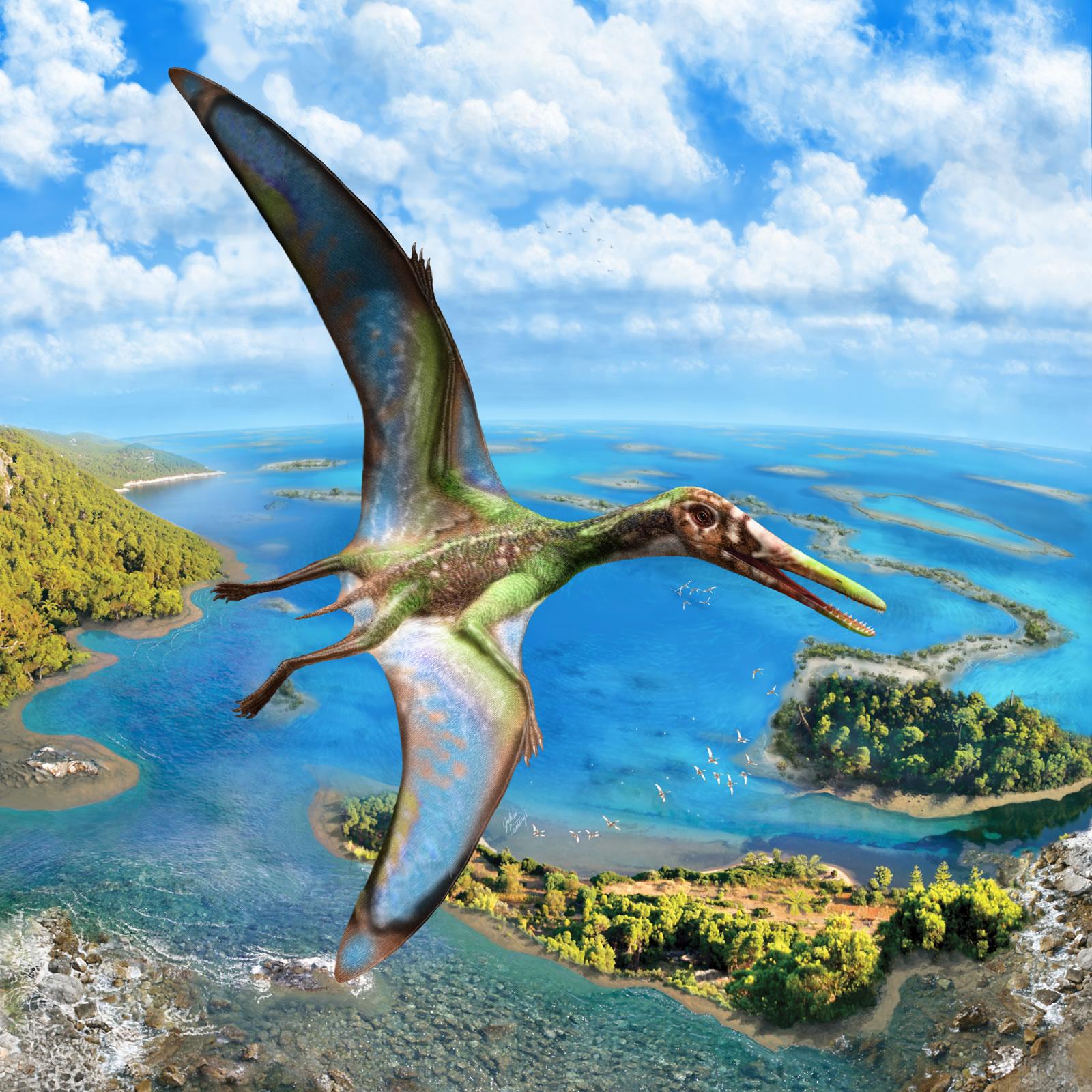翼龙是第一种拥有飞行能力的脊椎动物。不同体型的翼龙都会长时间逗留在水边,并有能力从水面起飞。图片提供:Julius T. Csotonyi