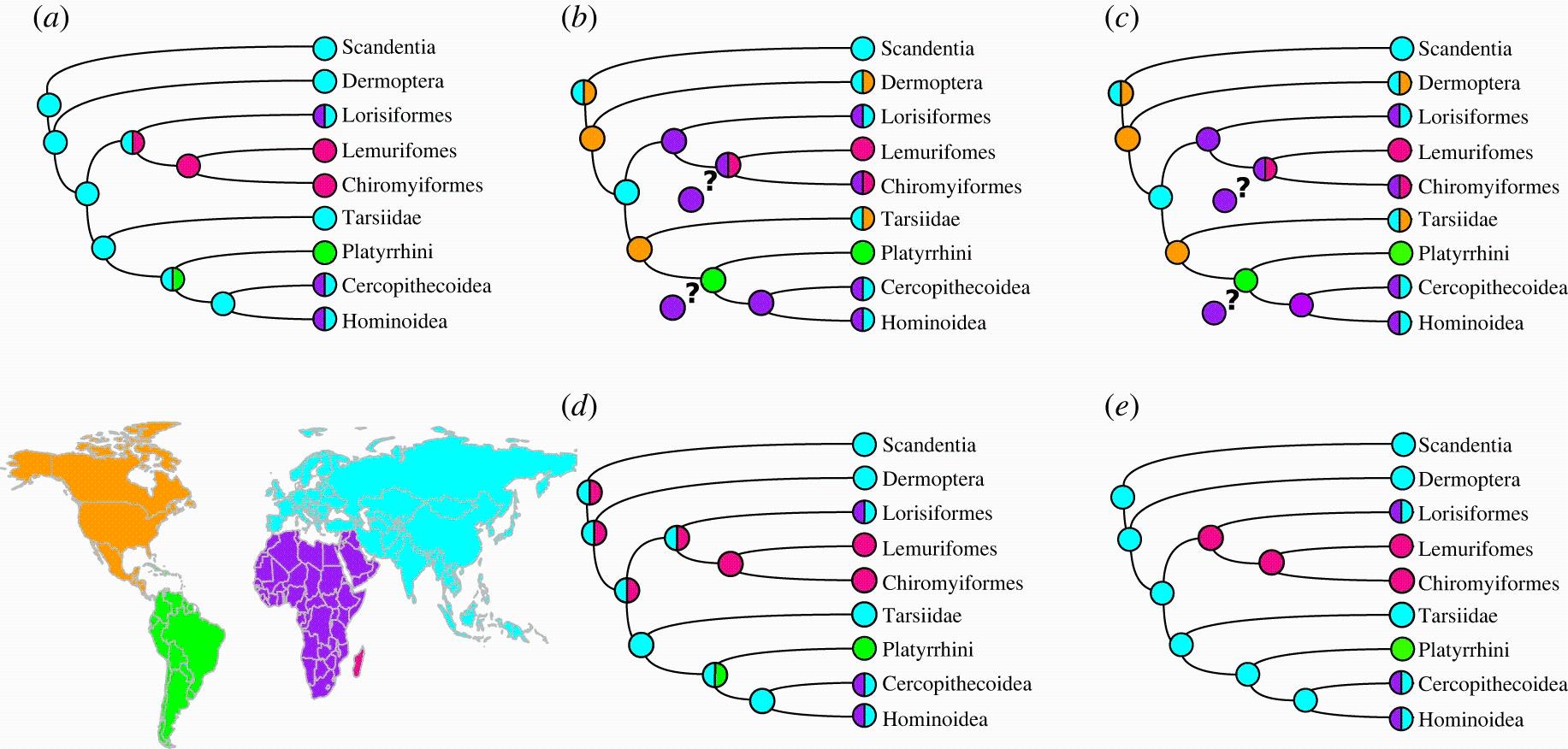 地球物理科学系副教授Slater说:“灵长类动物可以通过不同的方式在全球范围内传播。一个特定的物种可能出现在北美,并分散到欧亚大陆;然后,新的物种可以在北美或欧亚大陆或两者中从这一品系分支出来,或在任何一个地方灭绝。通过沿着家族树回溯,我们可以弄清楚最可能出现的情况和祖先是什么。”