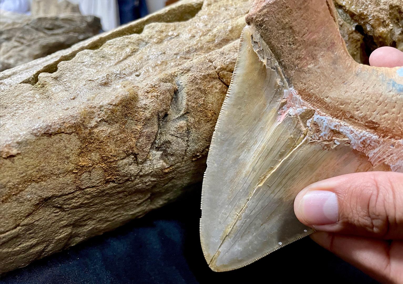 秘鲁科学家在观察生活在中新世(距今2300万至530万年前)的一些鲸头骨化石时发现,大量撕咬痕迹是多种鲨鱼留下的,这些咬痕来自已经灭绝的巨齿鲨和一些生存至今的鲨鱼,如大白鲨和马可鲨。此外,咬痕的位置告诉科学家,鲨鱼们瞄准的是这条鲸的额头和鼻子,这很可能是因为这些部位富含脂肪。