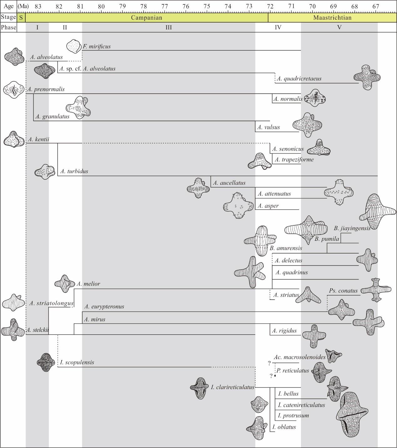 研究者还详细研究了松科1井三突起类属种组成和各属种的地史发育情况,识别出松辽盆地三突起类发生、辐射、平稳发展、极度繁荣及逐步灭绝的五个演化阶段。其形态学的演化趋势表现为个体变大、纹饰变得粗壮和复杂,以及出现特殊构造。